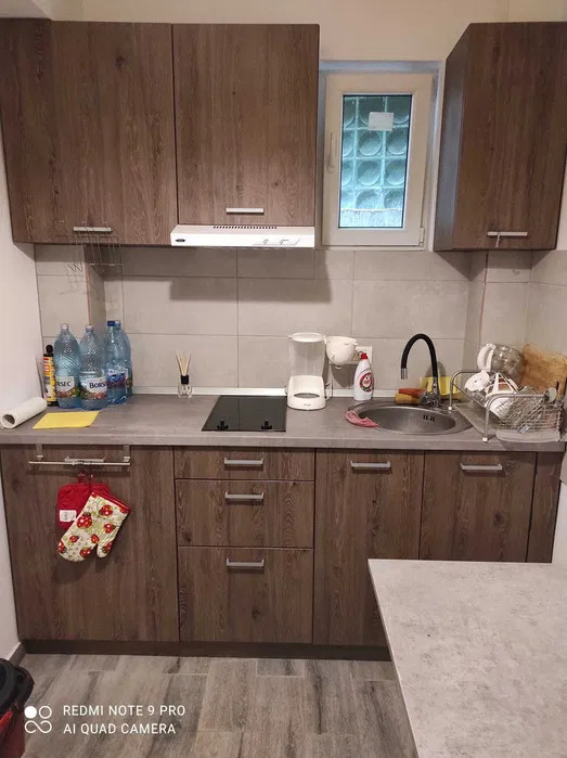 Bucataria este mobilata si utilata complet, dotata cu toate electrocasnicele necesare .