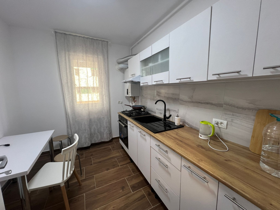 Bucataria este mobilata si utilata complet, dotata cu toate electrocasnicele necesare.