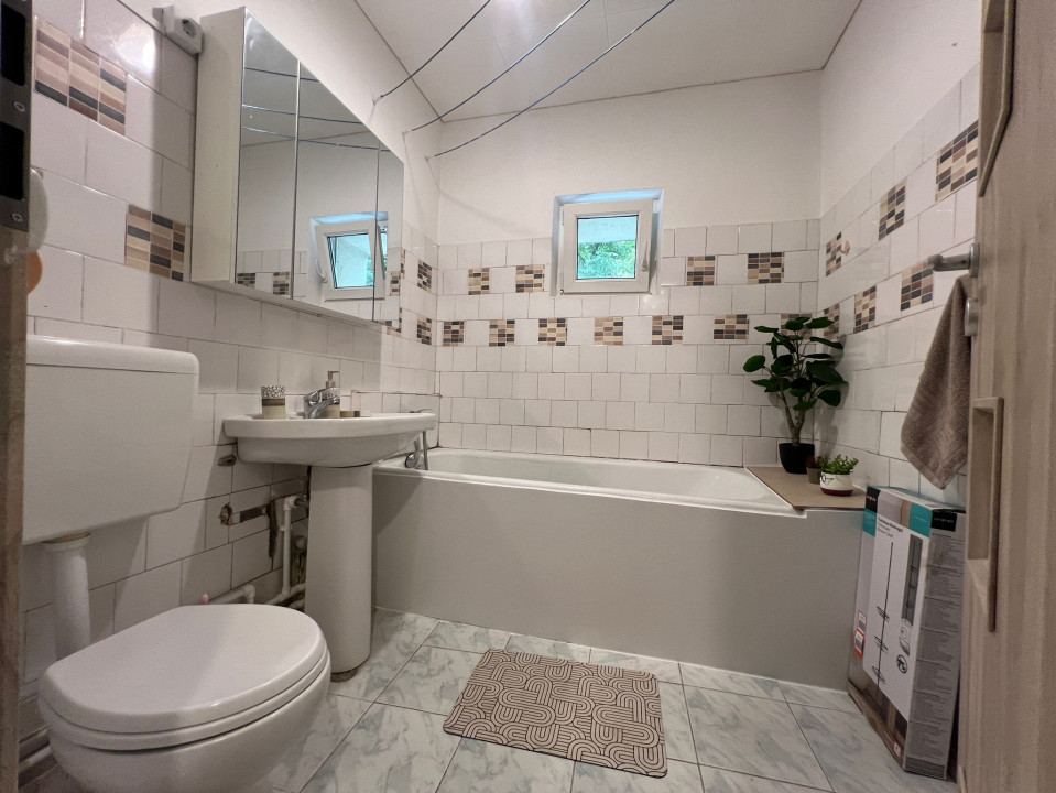 Bucataria este mobilata si utilata complet, dotata cu toate electrocasnicele necesare.