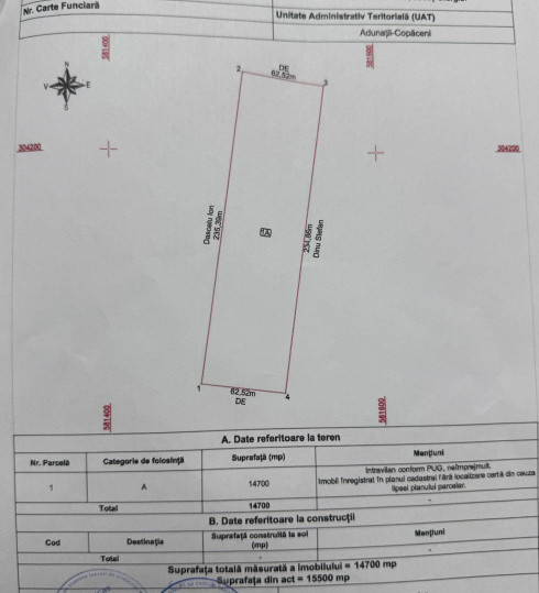 Pozitie superba, discreta, zona plina de verdeata si liniste, pozitionat la iesire din Adunatii Copaceni in spatele banzinariei TSV de pe Drumul E70, documentatie cadastrala completa.